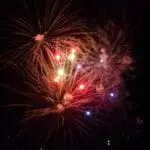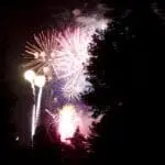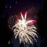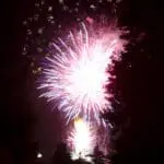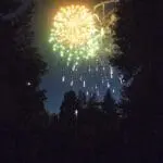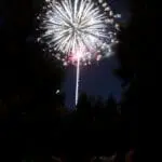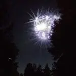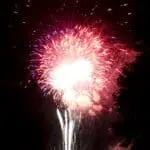 Note to fellow photographers: these were all shot hand-held using a vibration-reduction zoom lens with the focus set at infinity. Most were taken at about 28mm (wide-angle). About a third of them were shot at high ISOs (i.e., anything up to and including 25,600) while the remainder were shot at ISO 200. I was experimenting with different ISOs based on some advice for photographing fireworks on Ken Rockewell’s site, www.kenrockwell.com (if you don’t know about Ken, you should — even if you disagree with some of his views on photography you’ll find a wealth of ideas on his site).
