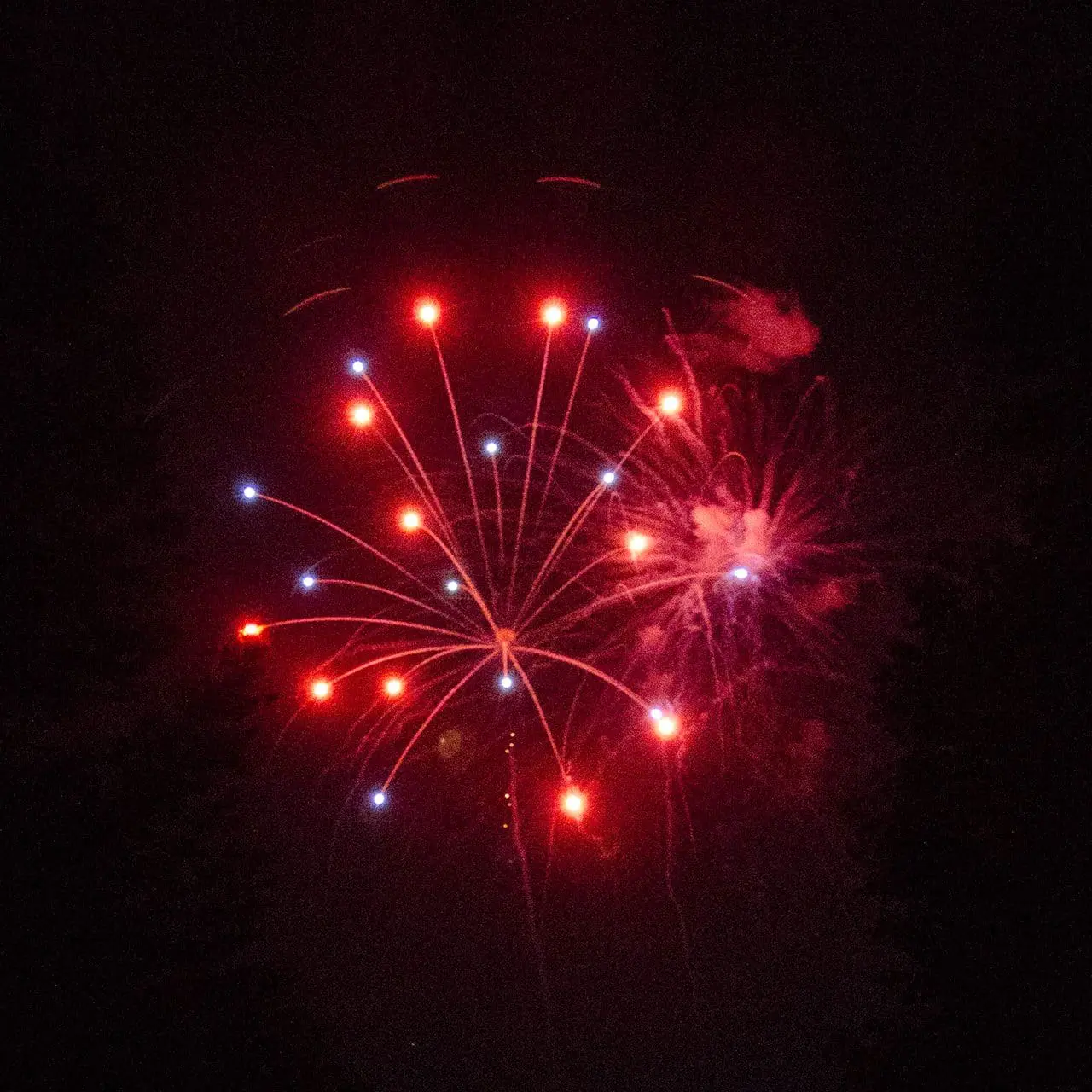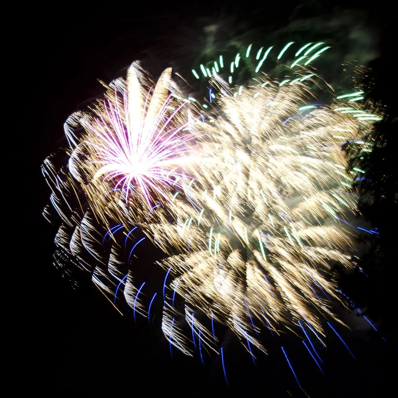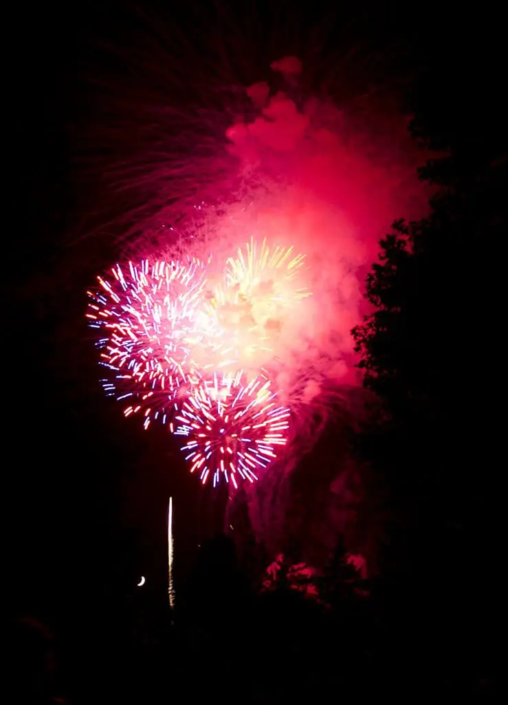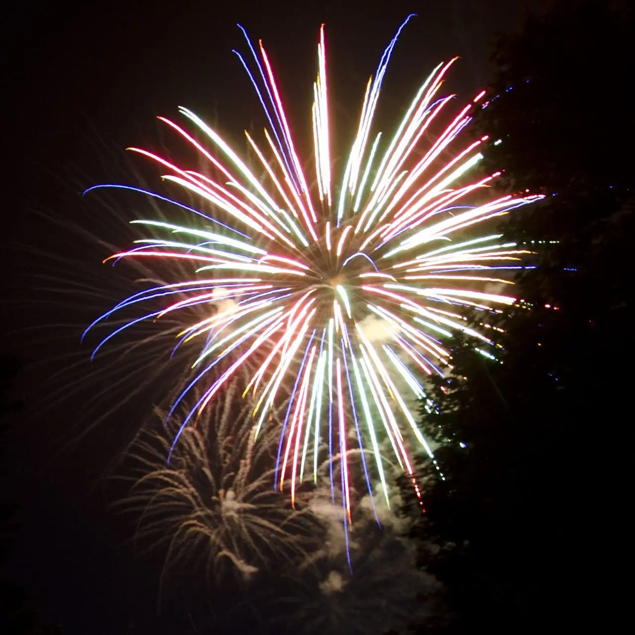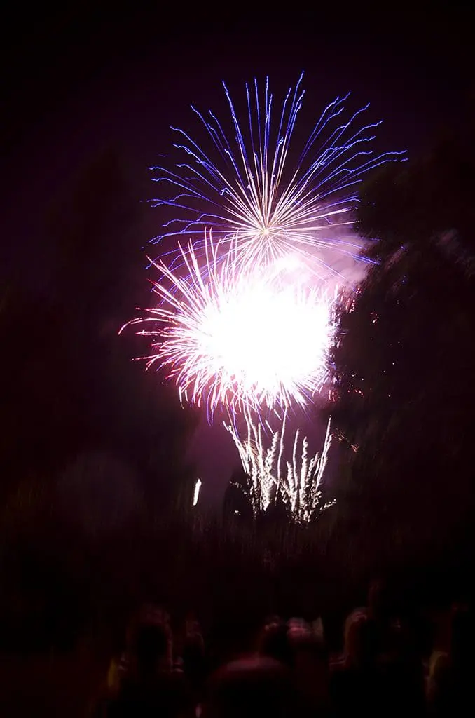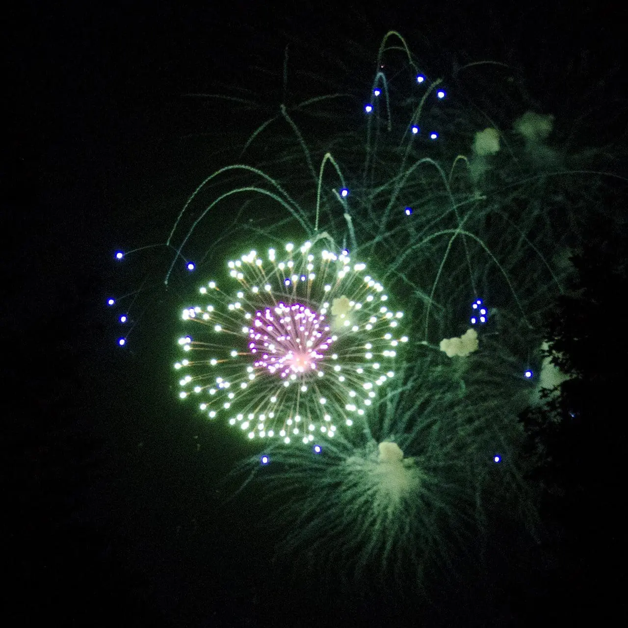 Note to fellow photographers: these were all shot hand-held using a vibration-reduction zoom lens with the focus set at infinity. Most were taken at about 28mm (wide-angle). About a third of them were shot at high ISOs (i.e., anything up to and including 25,600) while the remainder were shot at ISO 200. I was experimenting with different ISOs based on some advice for photographing fireworks on Ken Rockewell’s site, www.kenrockwell.com (if you don’t know about Ken, you should — even if you disagree with some of his views on photography you’ll find a wealth of ideas on his site).
