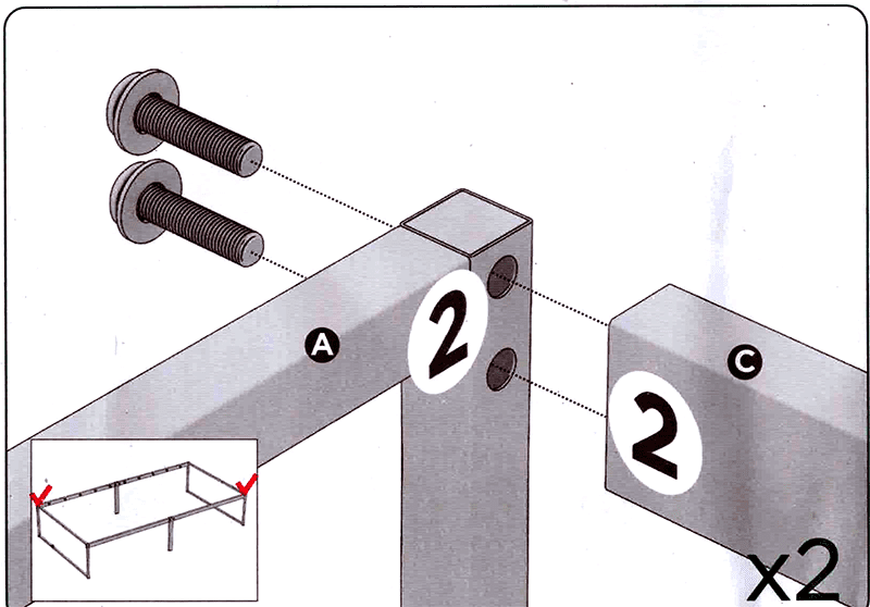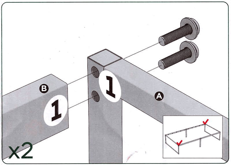 The instructions have you screw various parts of the frame together. Here are the pictures, in the order defined by the assembly instructions: