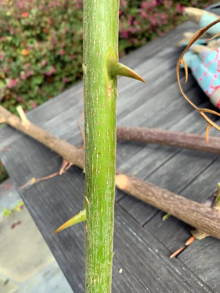 The only good thing about the thorns is that, unlike roses, they’re spaced far enough apart that you can get a good handhold on a branch in between them.