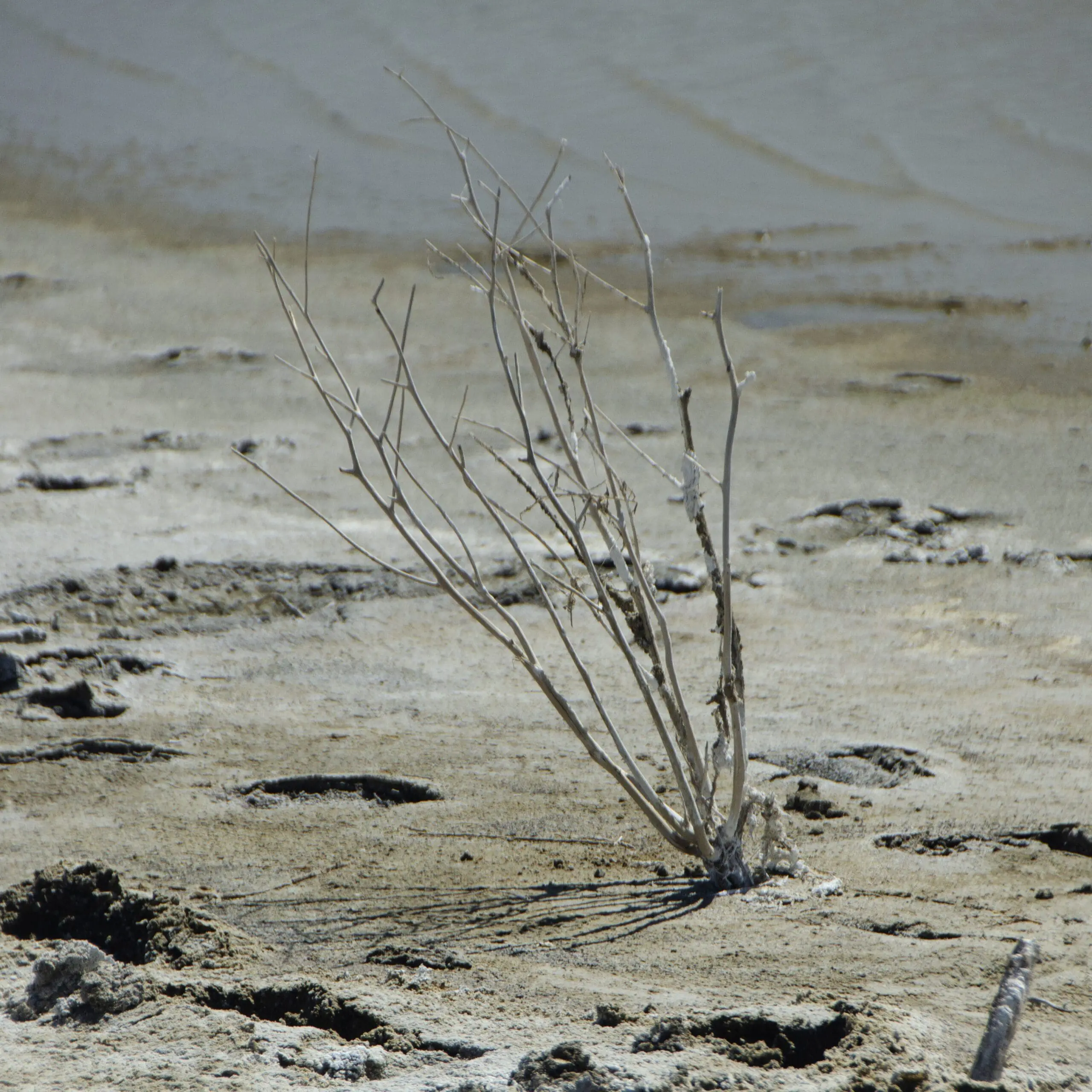 A significant, albeit temporary, feature of Carrizo Plain is Soda Lake. Which apparently only exists briefly, because it has no feeder streams or rivers; the only water it gets comes from rainfall. As a result, it is filled with various salts — most of which are not your standard sodium chloride table salt — and quite alkaline.