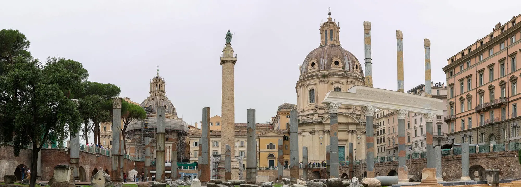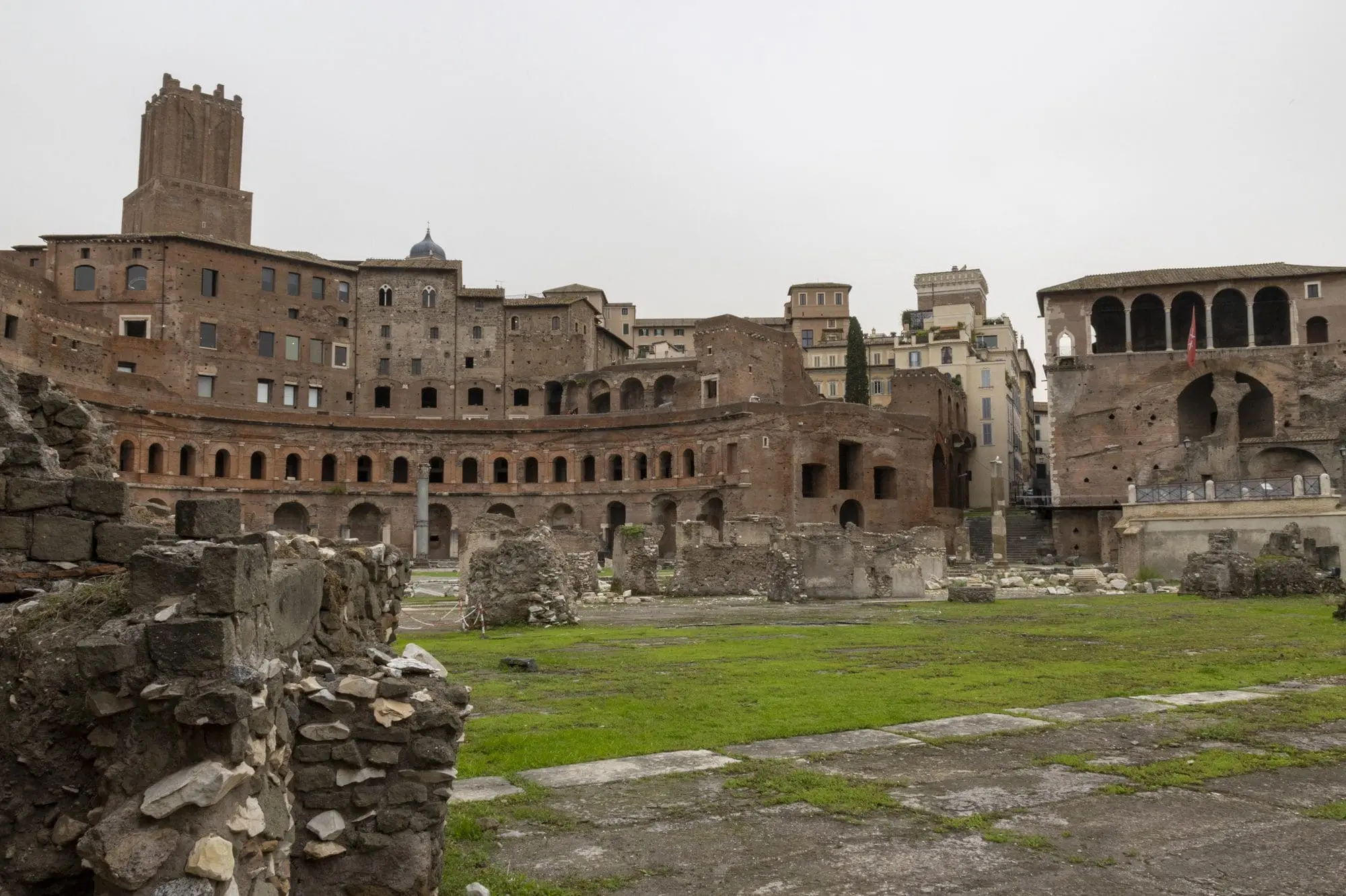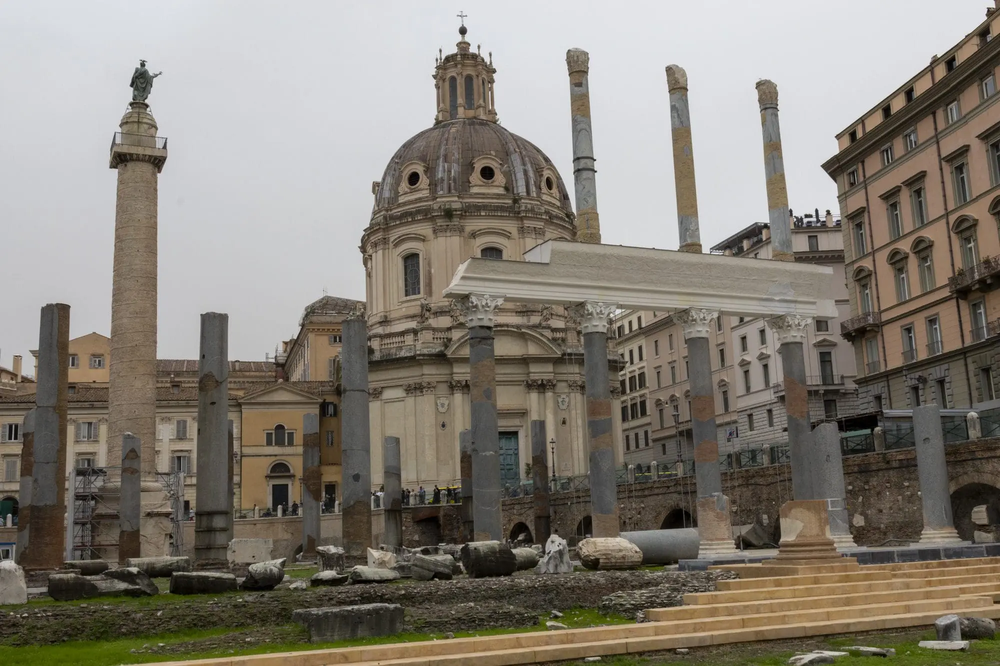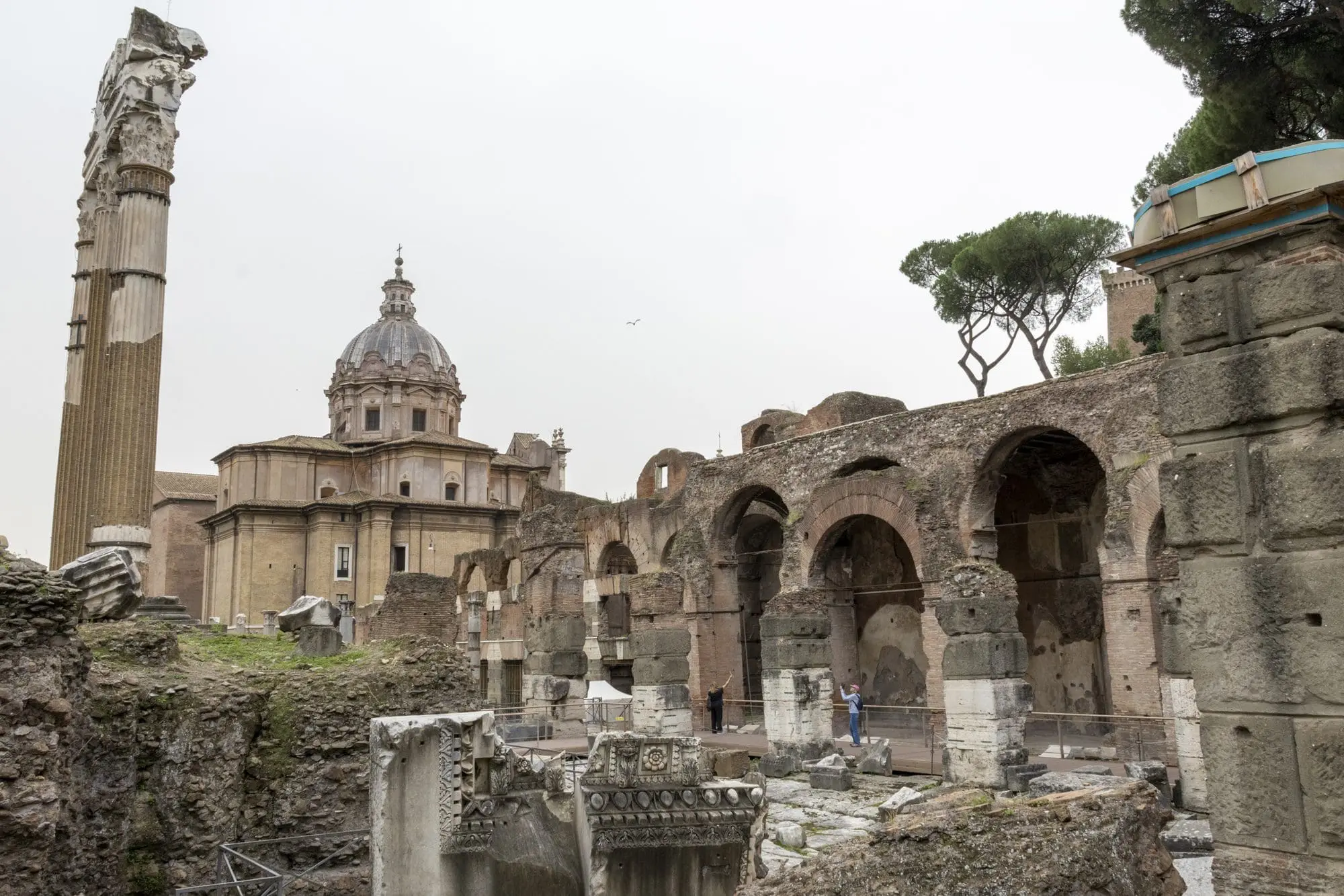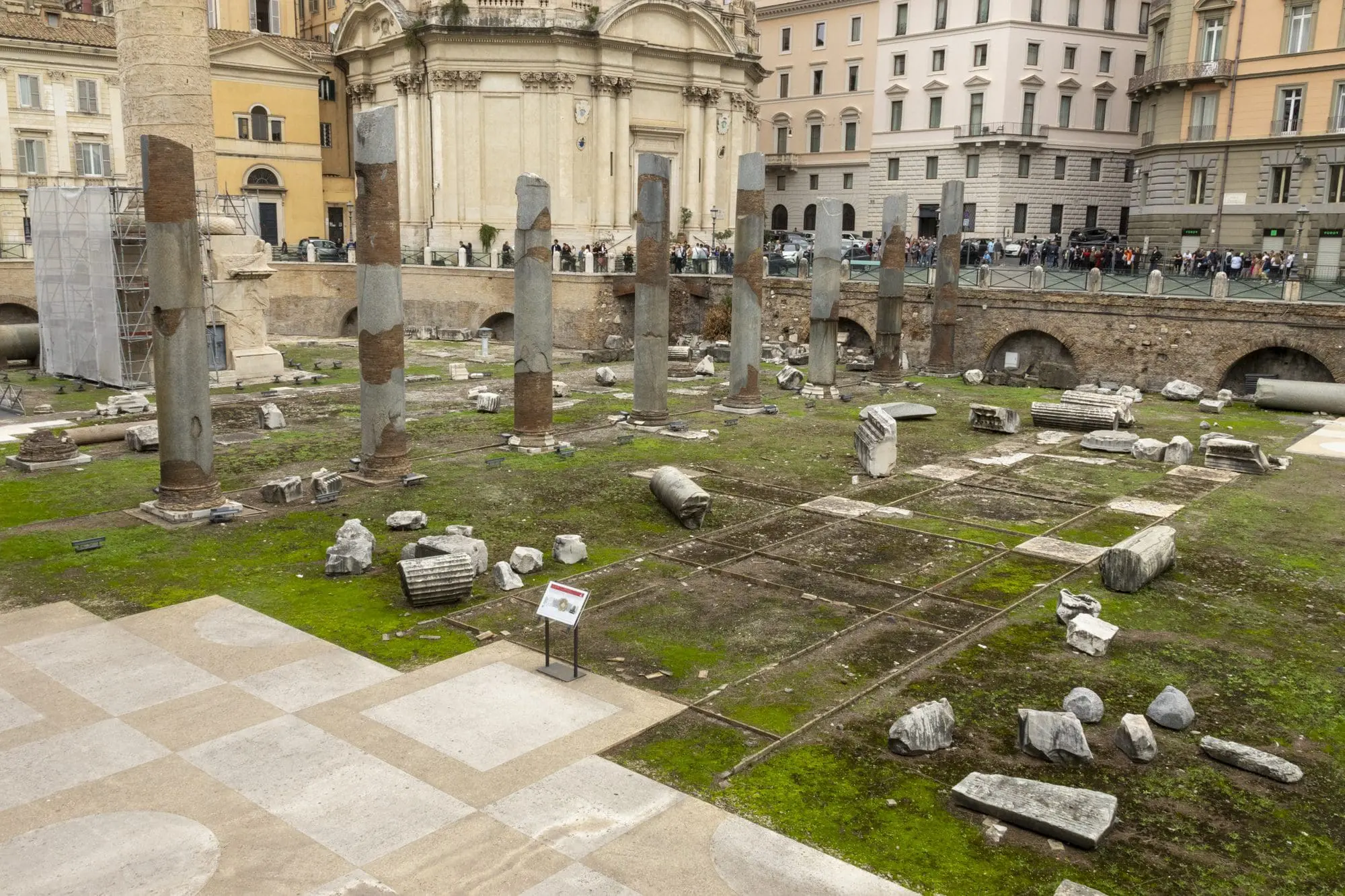 We ended up touring the forums mostly in reverse chronological order based on where we entered. The most recent one, the one whose ruins we walked through first, was Trajan’s Forum.