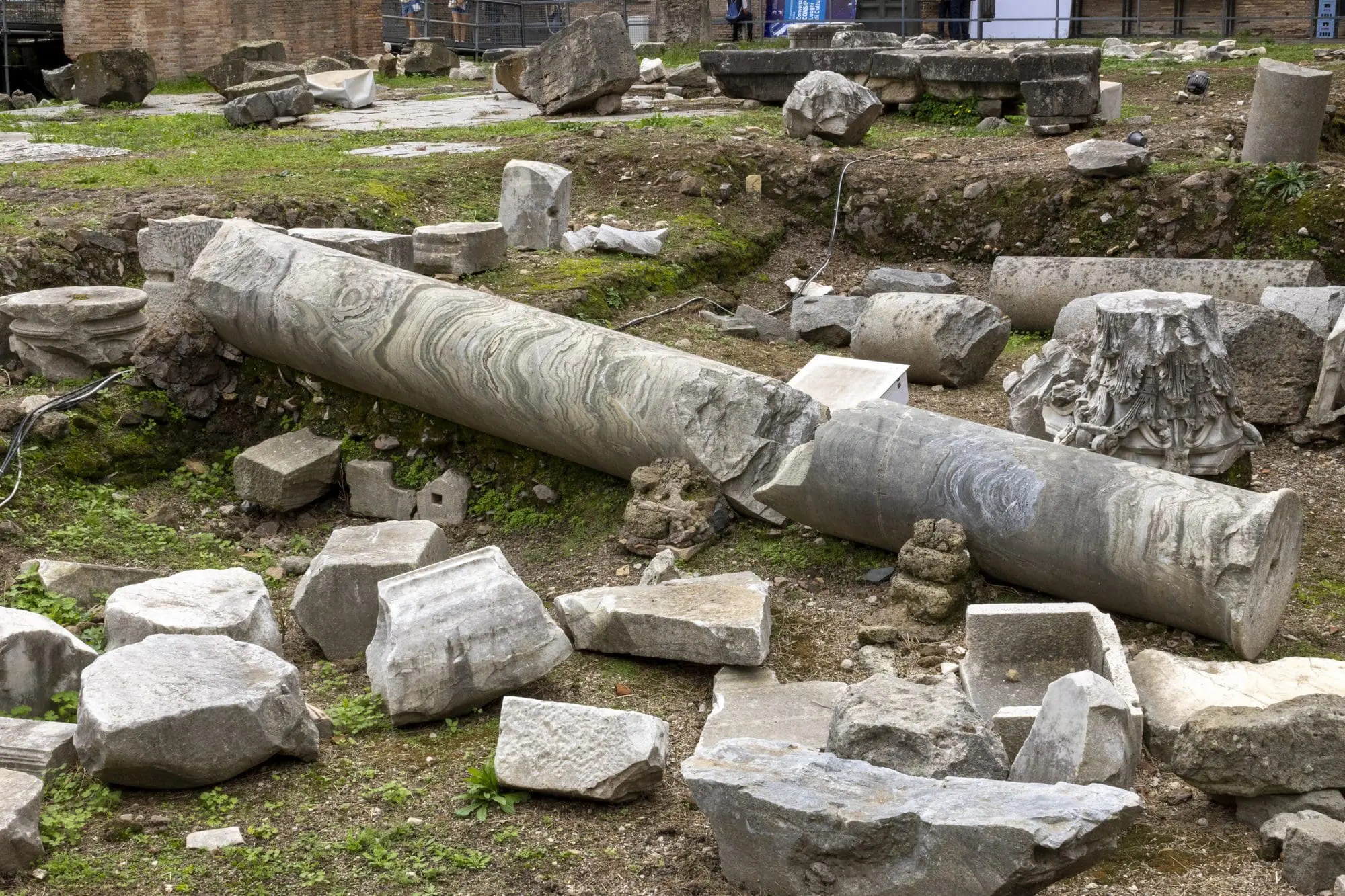 As you walk through the forums, there are lots of columns around. Some have been restored to their original vertical orientation, but many of them are simply lying on the ground.