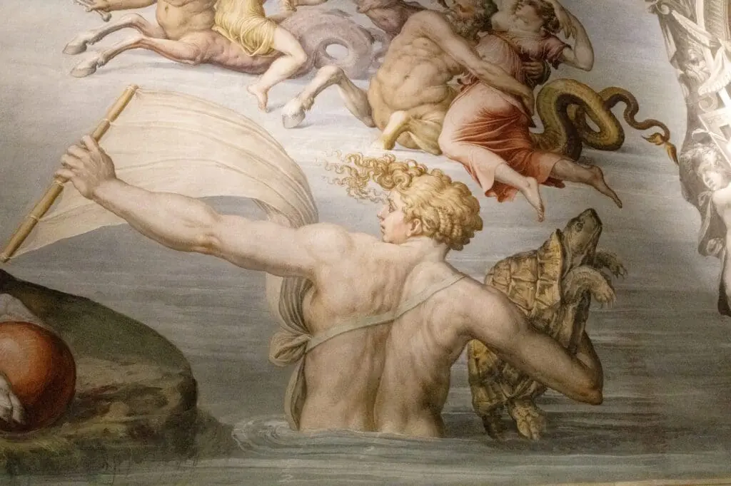 There were lots of interesting paintings on the walls, too. Including a very large one showing tons of people making offerings to the god Saturn. One of which involved a turtle…who didn’t appear to be looking forward to being an offering.