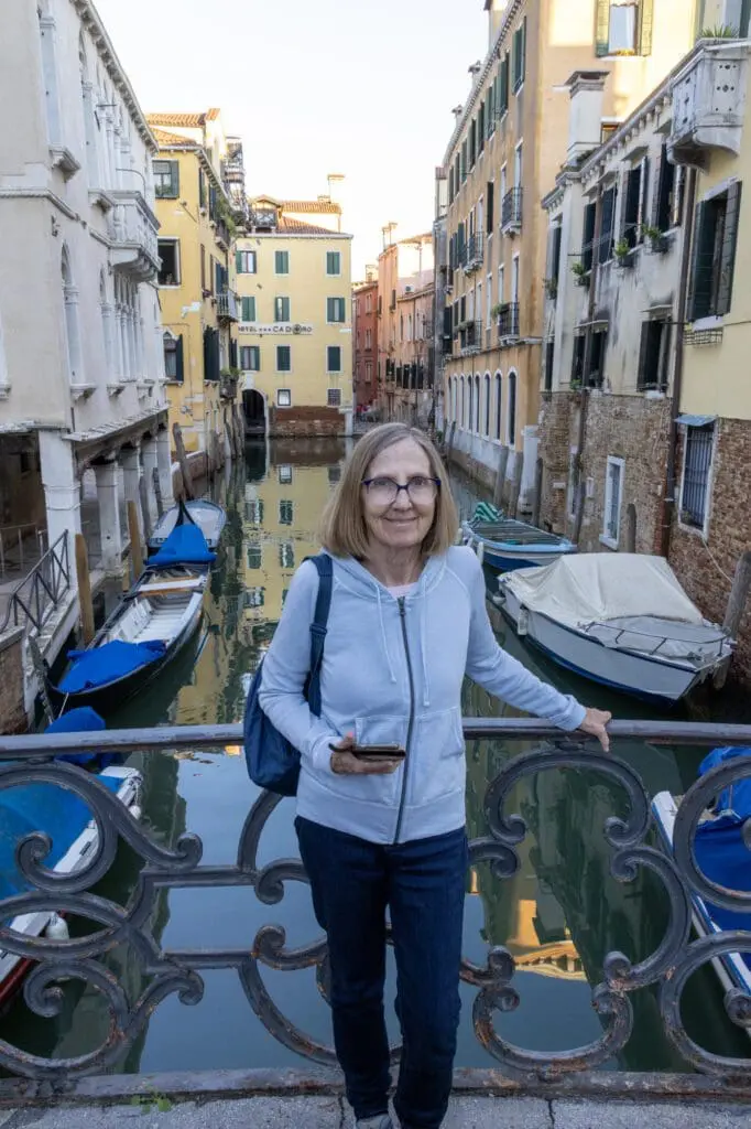 Our arrival in Venice got off to a rocky start because I realized, as we were disembarking, I’d lost the lens cap to my camera. A group of American visitors across the aisle heard me tell Barbara about that, and they told me a steward had found it and had gone up and down the carriage several times asking if anyone was missing it. They thought the steward finally announced the cap would be available in the club car. Apparently, I was either so engrossed in the scenery, my Kindle or sleeping that I didn’t hear any of this.