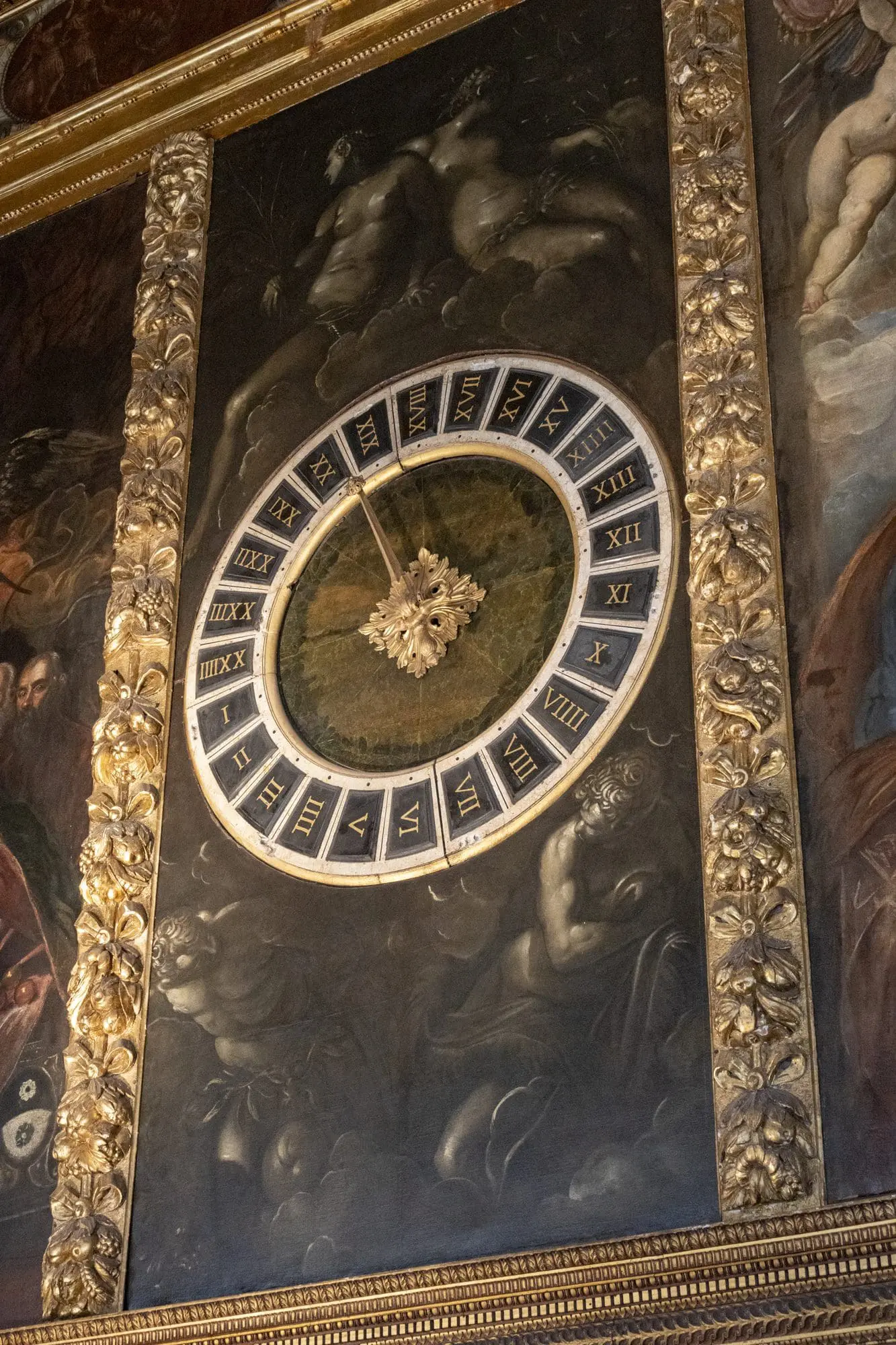 Some of the rooms featured clocks of a kind I’d read about but had never seen before. They lack a minute hand, because when they were built, the timekeeping mechanism wasn’t accurate enough to show minutes.