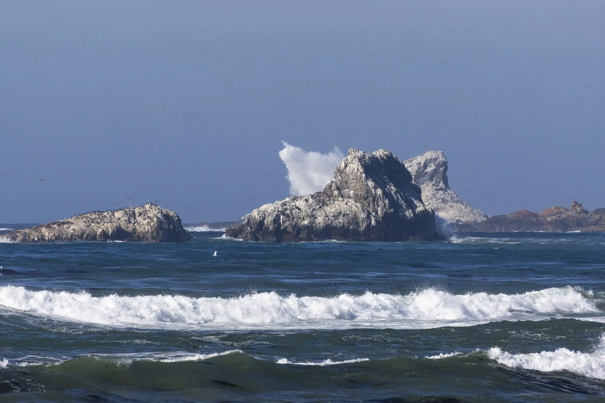 The Piedras Blancas Light Station is a few miles north of Hearst Castle. We stumbled across it on our way to check out an elephant seal “landing zone”…and because we noticed gigantic waves crashing into some very large rocks just offshore of the lighthouse!