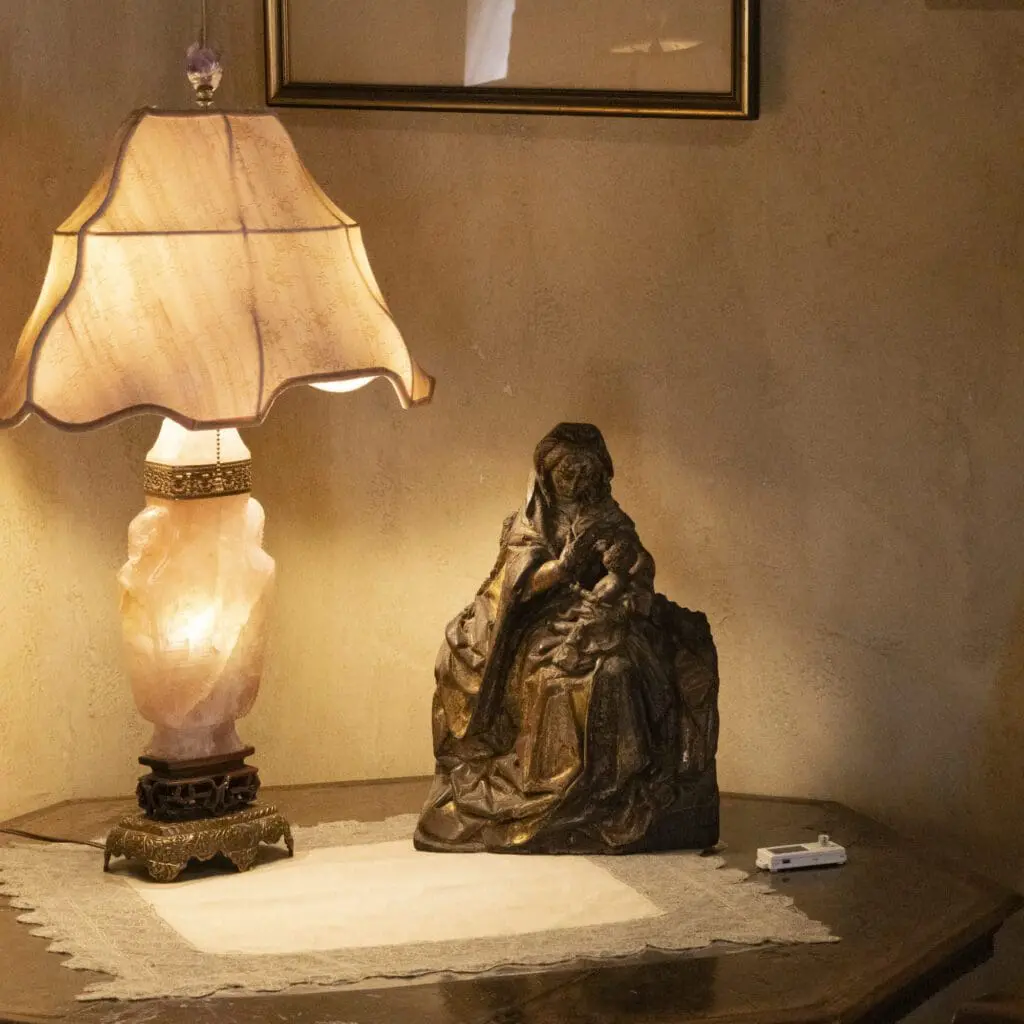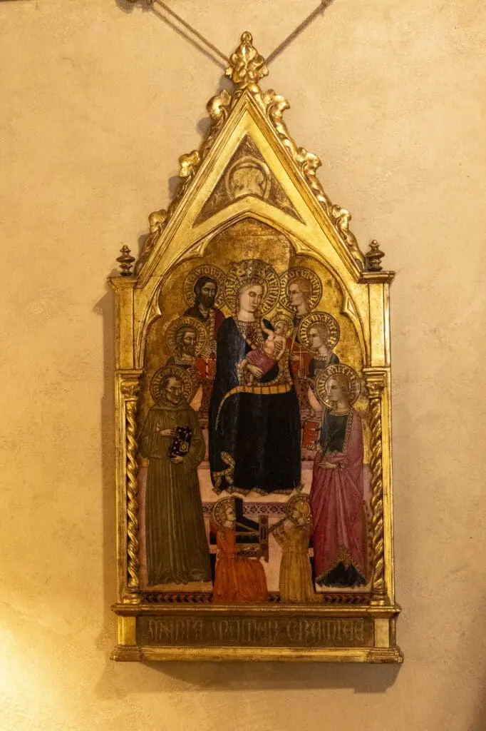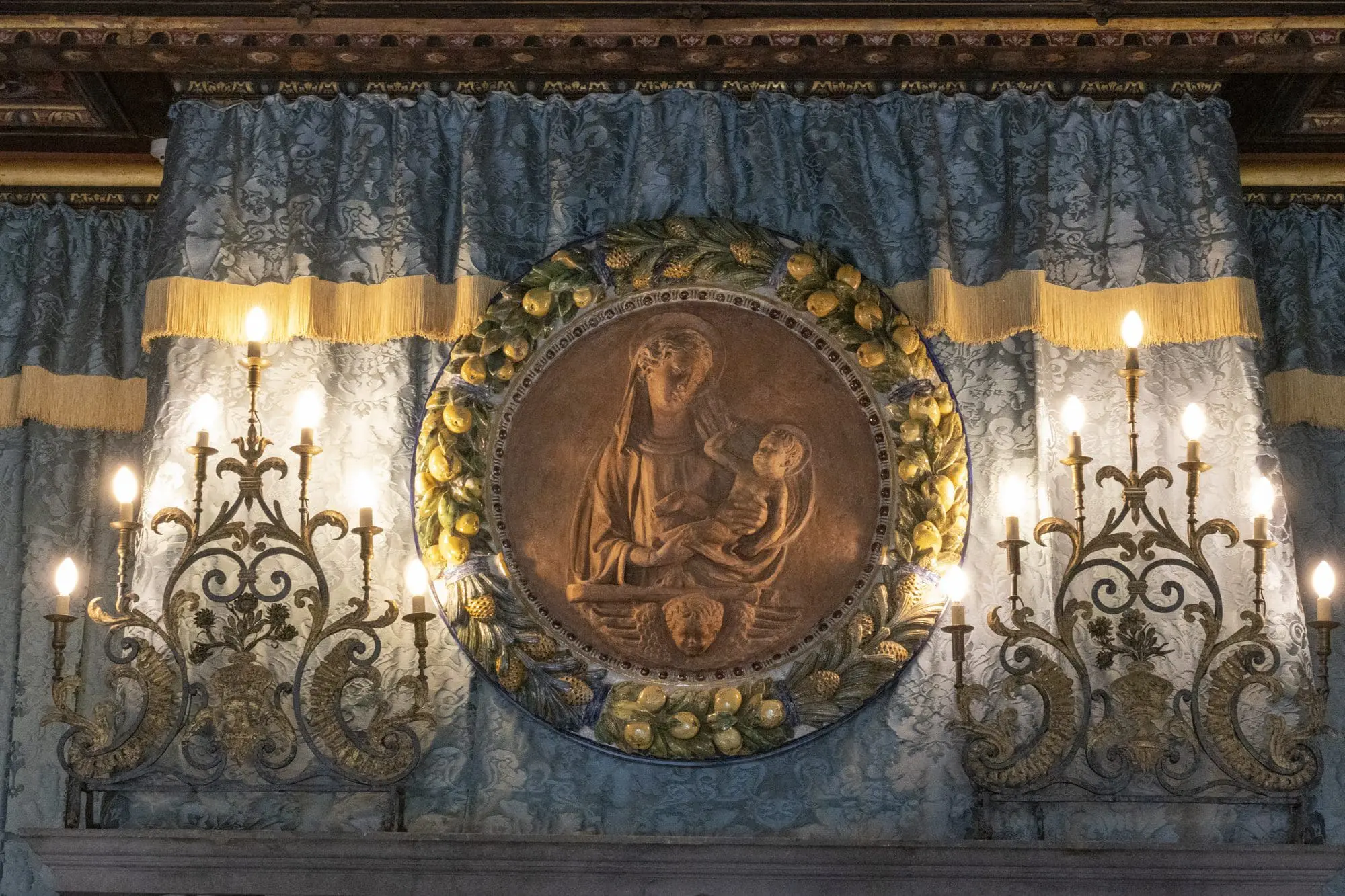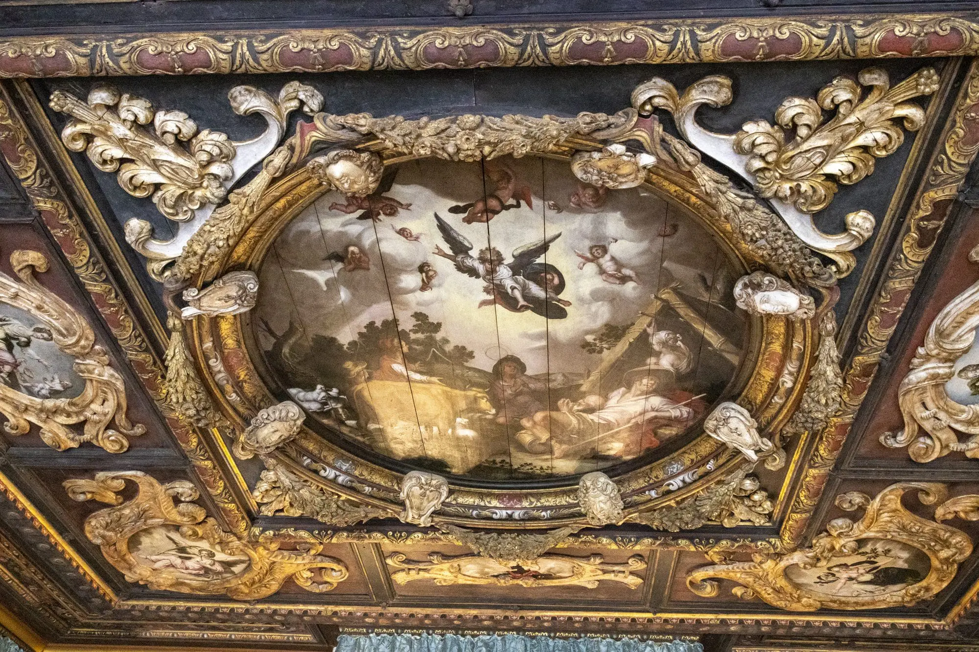 Stepping through the doorway puts you into a high-ceiling room filled with all sorts of art. Not to mention a massive fireplace, only part of which is original (the rest was carefully crafted to match). As with the great houses we saw on our recent trip to Italy, the ceilings themselves are integral parts of the display.