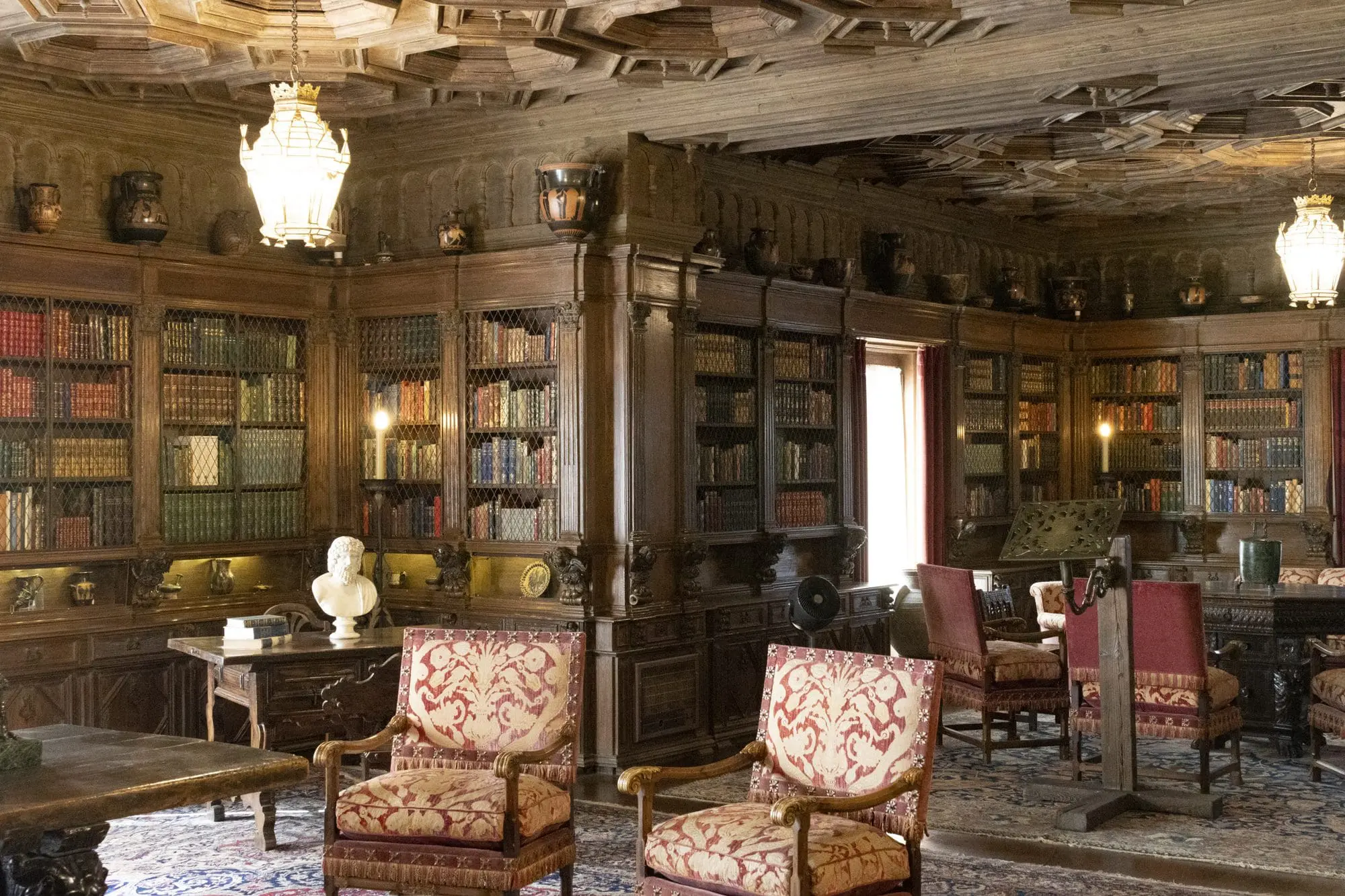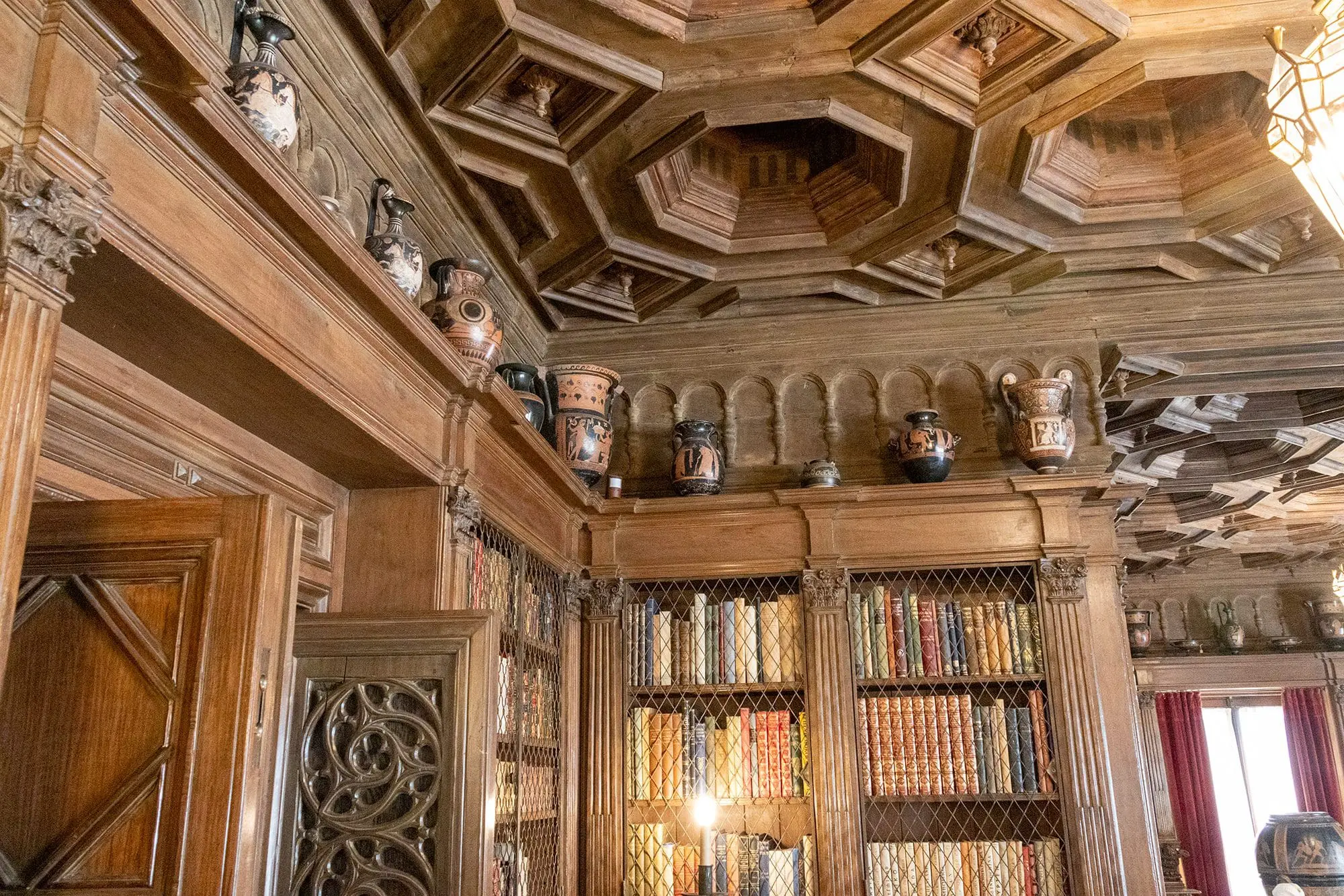 The one room I really lusted after was the library. I like being surrounded by books, and Hearst’s huge library was filled with them. Plus, it looks out on a beautiful stretch of ranchland and coastline. What’s not to like?