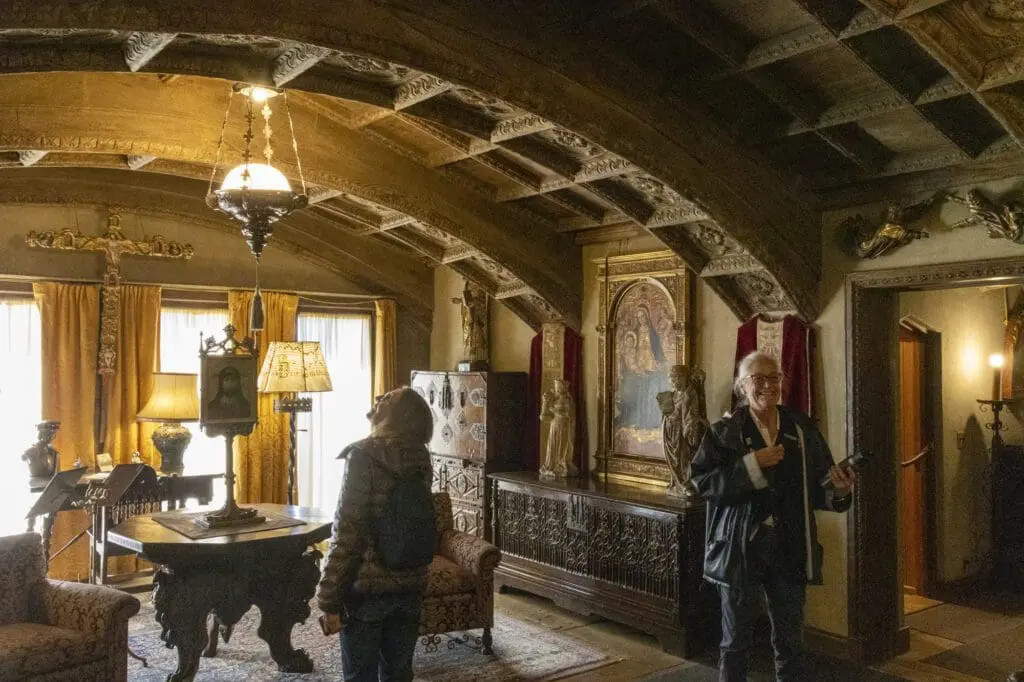 Hearst purchased casa grande’s entrance from a Spanish convent (he benefitted from hard economic times in Europe, which made a lot of artworks available at the right price). The entrance and the surrounding sculptures make the building look quite a bit like a cathedral.