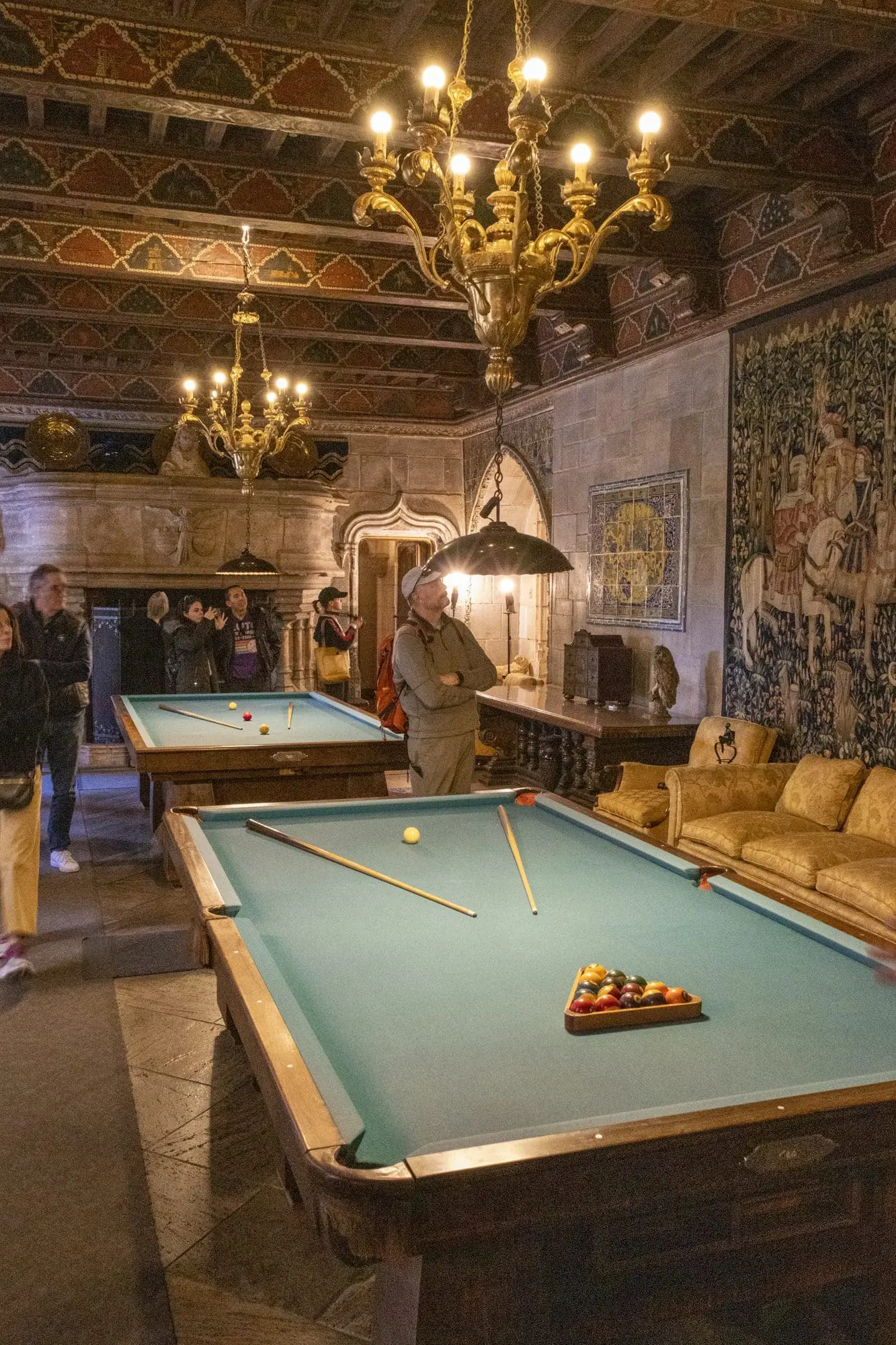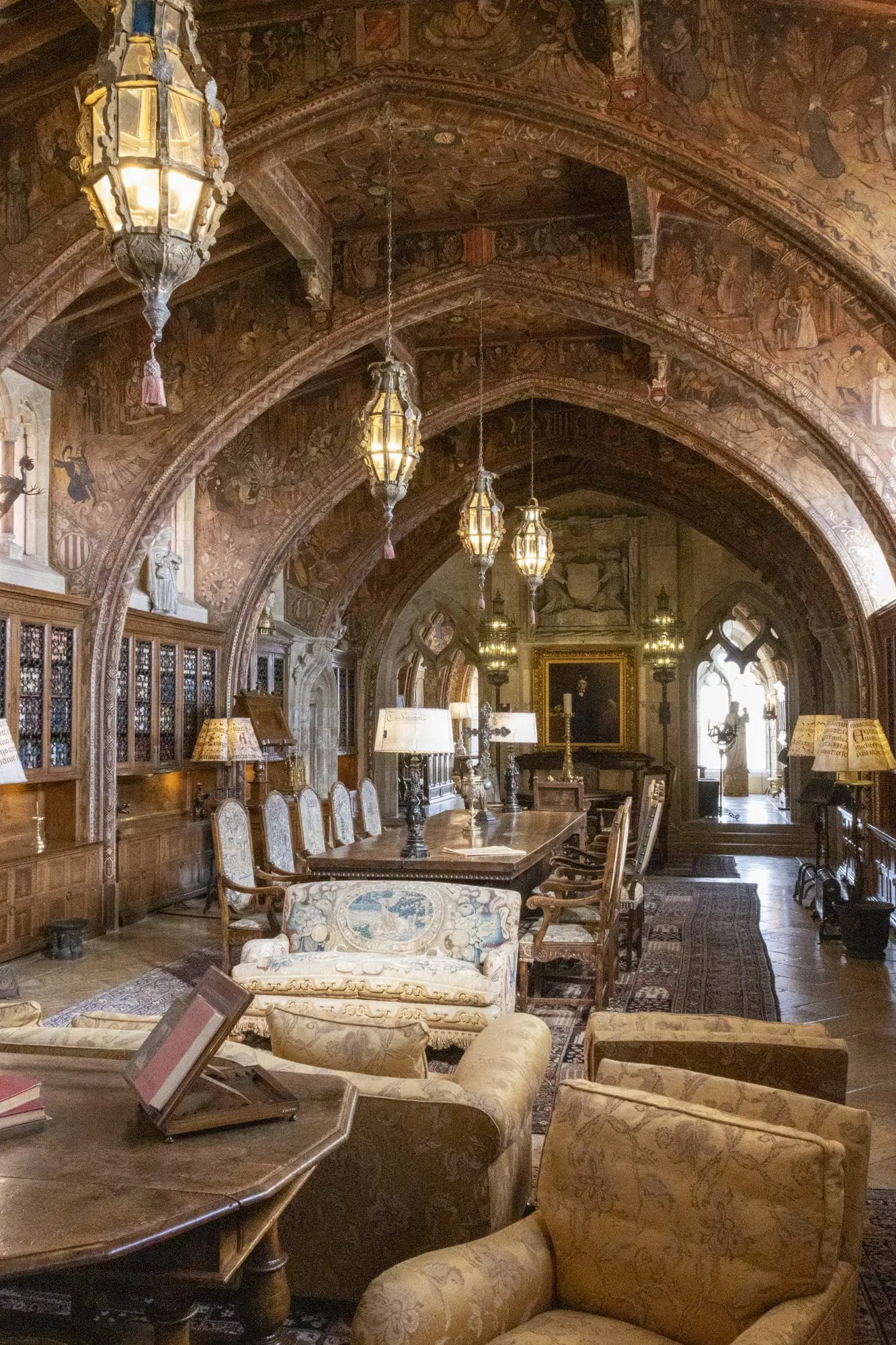 The one room I really lusted after was the library. I like being surrounded by books, and Hearst’s huge library was filled with them. Plus, it looks out on a beautiful stretch of ranchland and coastline. What’s not to like?