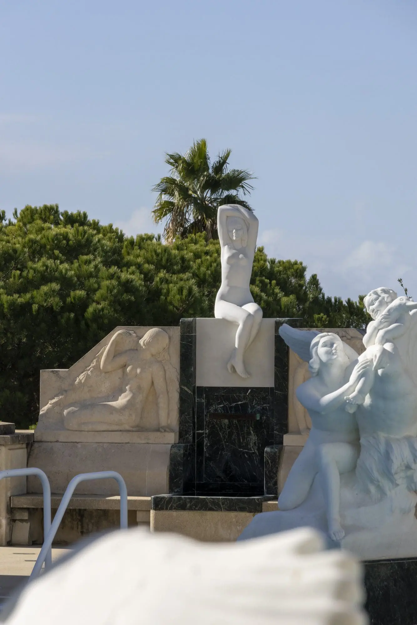 That’s demonstrated by his willingness to display reproductions as well as originals. For example, these columnar busts, which are all over the site, duplicate a single piece that’s squirreled away inside one of the buildings.