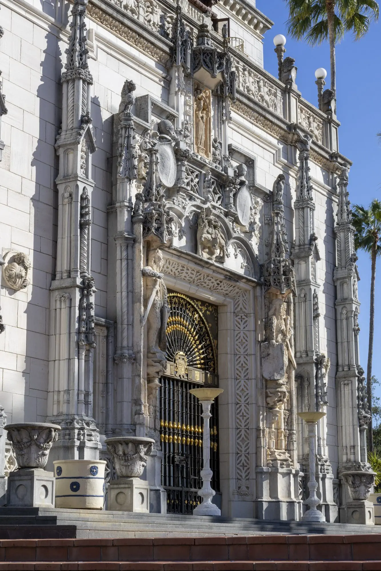 Hearst purchased casa grande’s entrance from a Spanish convent (he benefitted from hard economic times in Europe, which made a lot of artworks available at the right price). The entrance and the surrounding sculptures make the building look quite a bit like a cathedral.