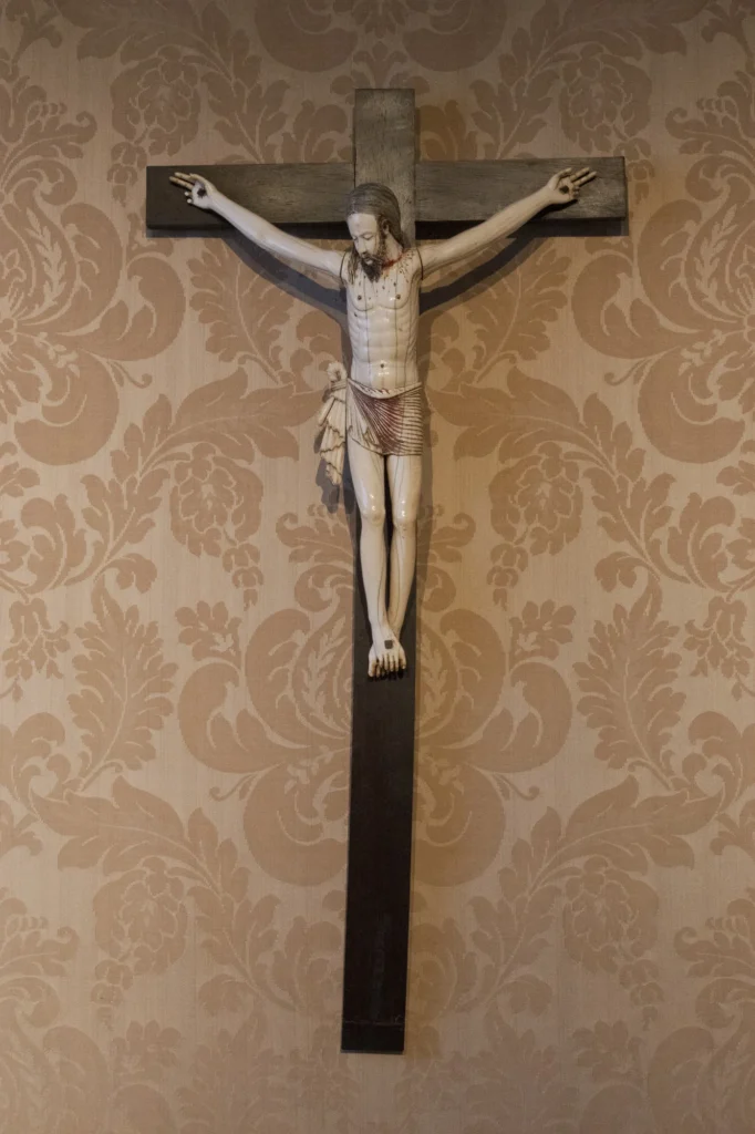 I found this depiction of the crucifixion interesting because it’s one of the only ones I can recall which features blood tracks on Jesus’ body. A bit gruesome, admittedly, but unusual nonetheless, I think.
