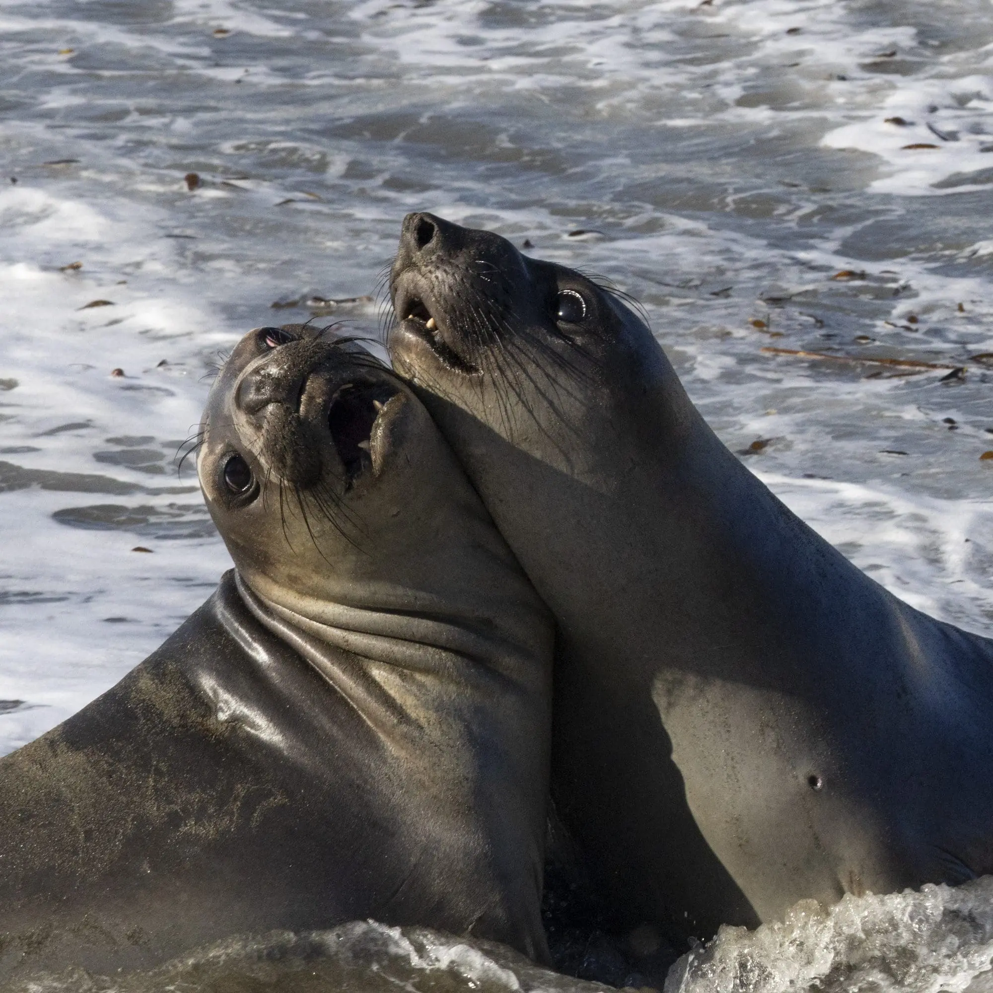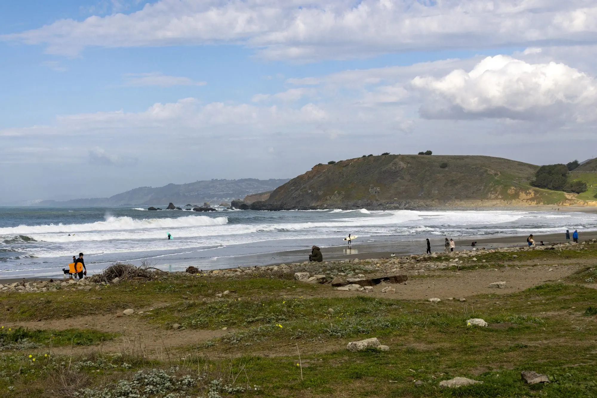 You can click on most of the images to enlarge them. Full-size, high-resolution versions are available in our Google Photos album. On one of my motorcycle trips down the coast through San Simeon, I’d passed a beach whose parking lot was jammed with cars. Because the beach itself was jammed