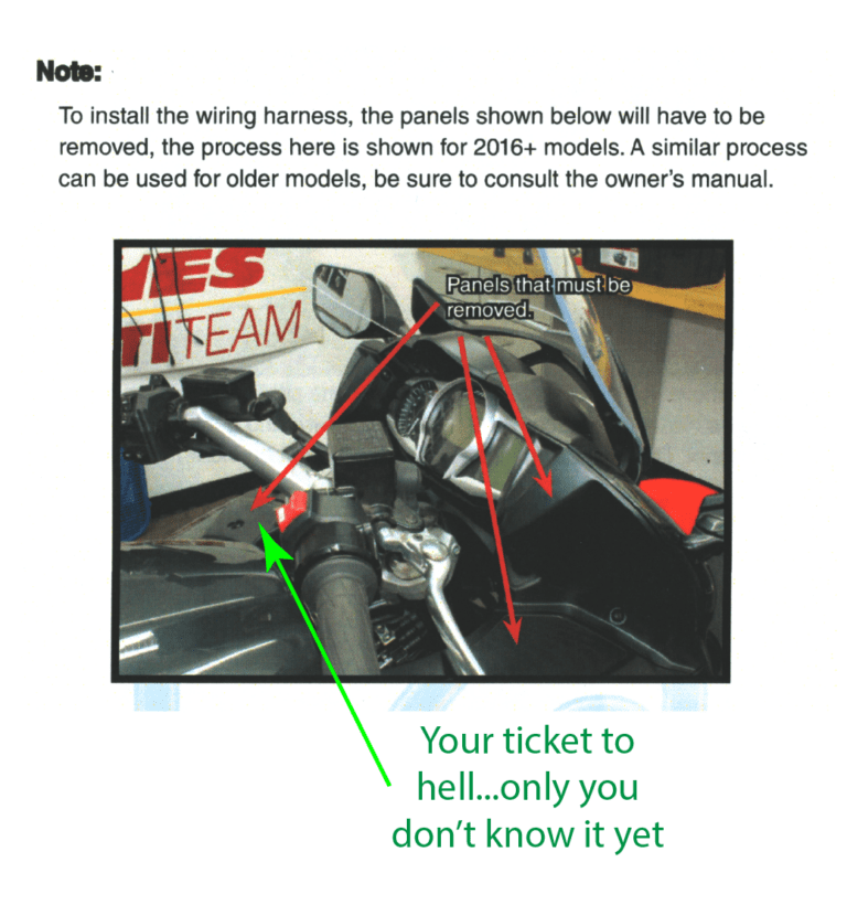 I recently purchased some Clearwater Darla lights for my FJR-1300. Installing them turned out to be beyond my capabilities due to the complexity of removing various cowling pieces to gain access to where the electronics need to be installed. I solved that by punting most of the installation to my